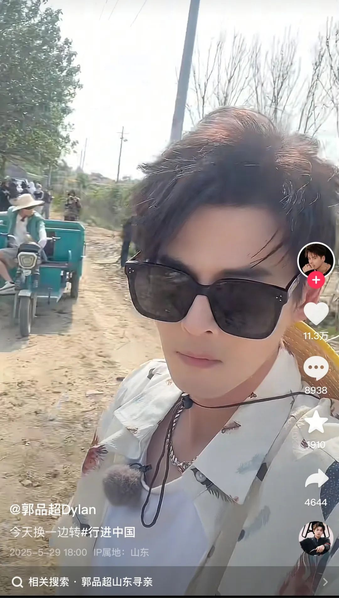近日,郭品超在社交平台分享在山东老家的生活,骑“三蹦子”、赶大集。从偶像剧男主到接地气山东大汉,彻底颠覆了荧幕形象。